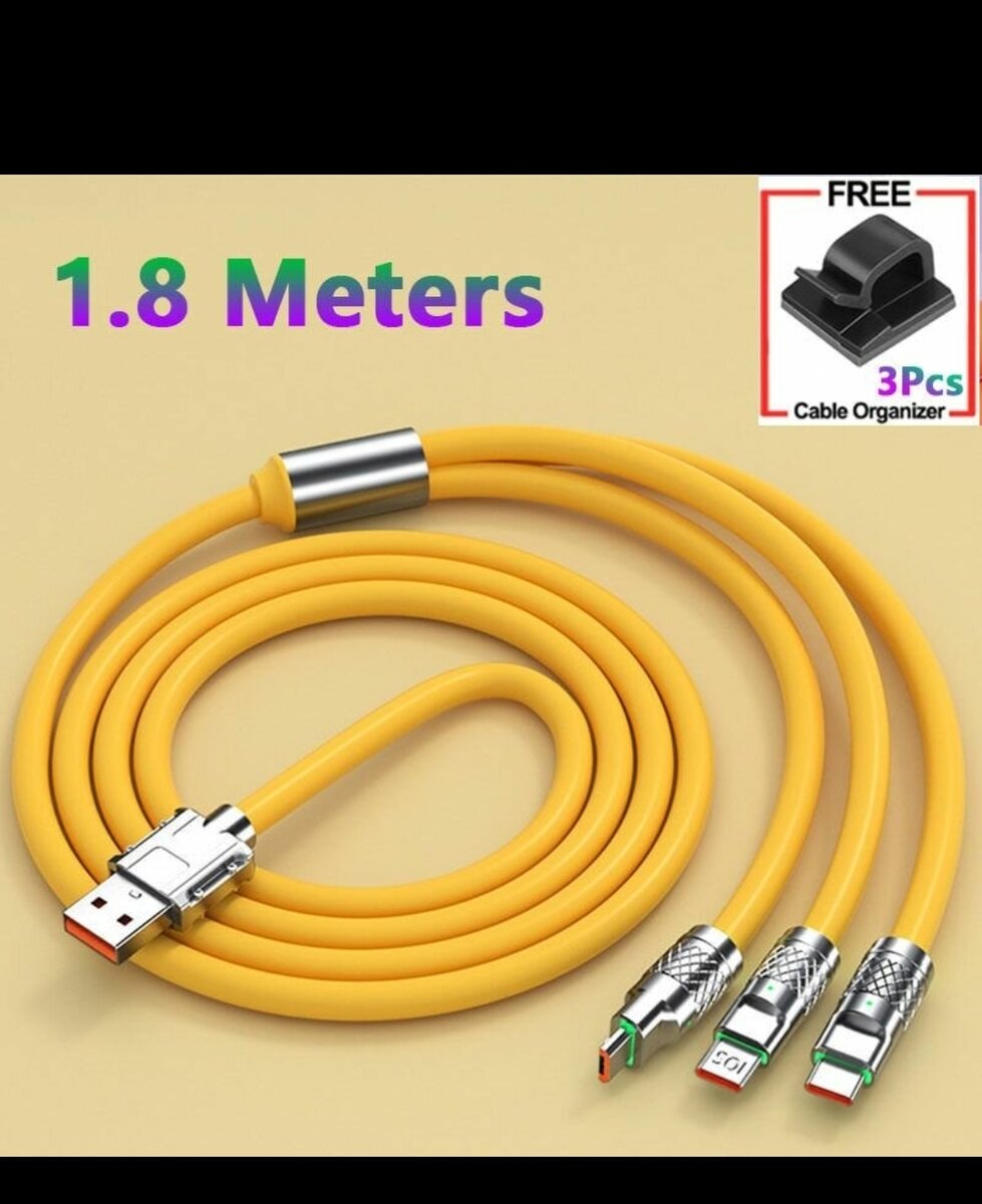 Ce câble de charge 3 en 1 de 1.8 mètres est la solution ultime pour recharger vos appareils. Compatible avec divers types de connecteurs, il simplifie votre quotidien en éliminant le besoin de multiples câbles. Livré avec des organisateurs de câbles gratuits pour un espace bien rangé, c'est un accessoire essentiel pour la maison ou le bureau. Idéal pour les déplacements et une utilisation quotidienne.