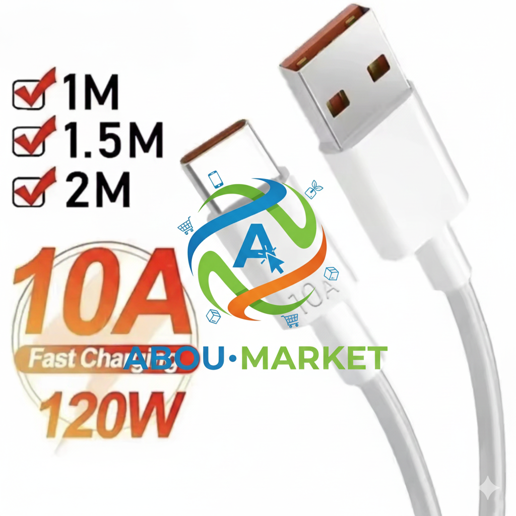 Câble USB-C haute puissance 120W, idéal pour une charge ultra-rapide et stable. Compatibilité universelle, longueur flexible (1M, 1.5M, 2M). Parfait pour appareils mobiles, tablettes et ordinateurs.