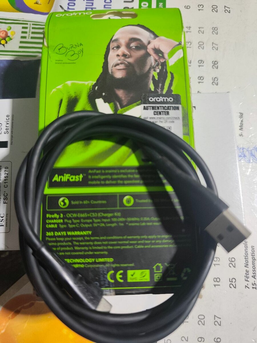 Câble de charge rapide USB Oraimo pour une recharge efficace de vos appareils. Conçu pour assurer une connexion stable et une longue durabilité. Compatible avec divers appareils.