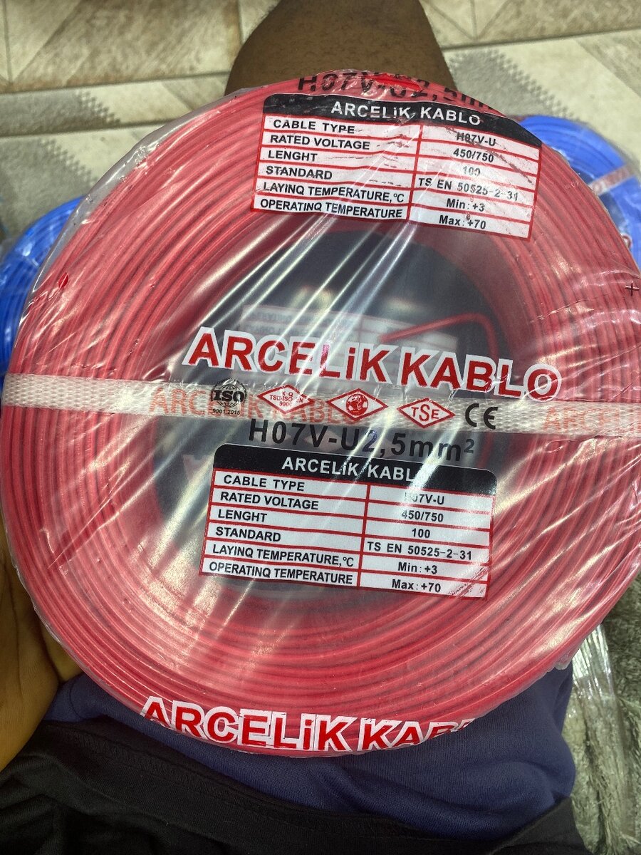 Câble électrique Arçelik Kablo H07V-U, section de 2.5mm², idéal pour installations intérieures. Tension nominale 450/750V. Compatible pour une installation sécurisée et durable. Parfait pour les professionnels et les projets résidentiels.