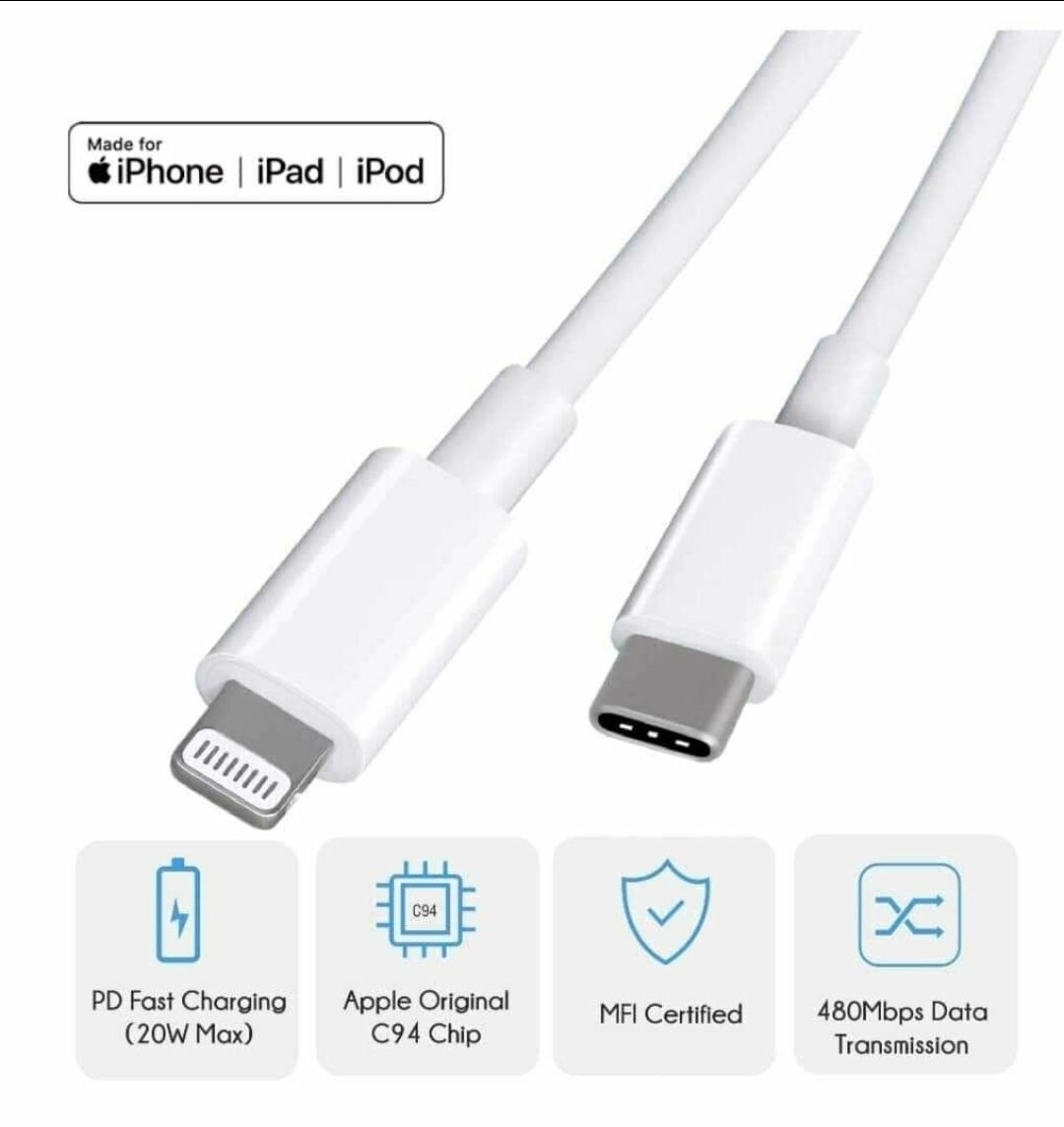 Câble Lightning vers USB-C certifié MFi pour iPhone, iPad et iPod. Charge rapide PD 20W et transmission de données jusqu'à 480Mbps. Conception avec puce originale C94 pour une compatibilité maximale. Idéal pour une charge efficace et une synchronisation rapide de vos appareils Apple.