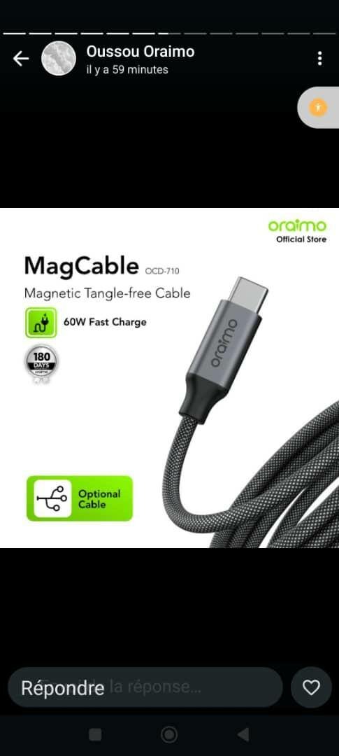 Câble Magnétique Oraimo 60W