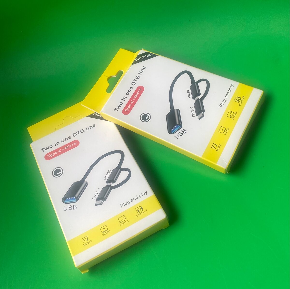 Câble OTG 2 en 1 pratique pour connecter des appareils USB Type-C et Micro USB. Parfait pour transférer des fichiers rapidement et efficacement. Plug and play facile d'utilisation.
