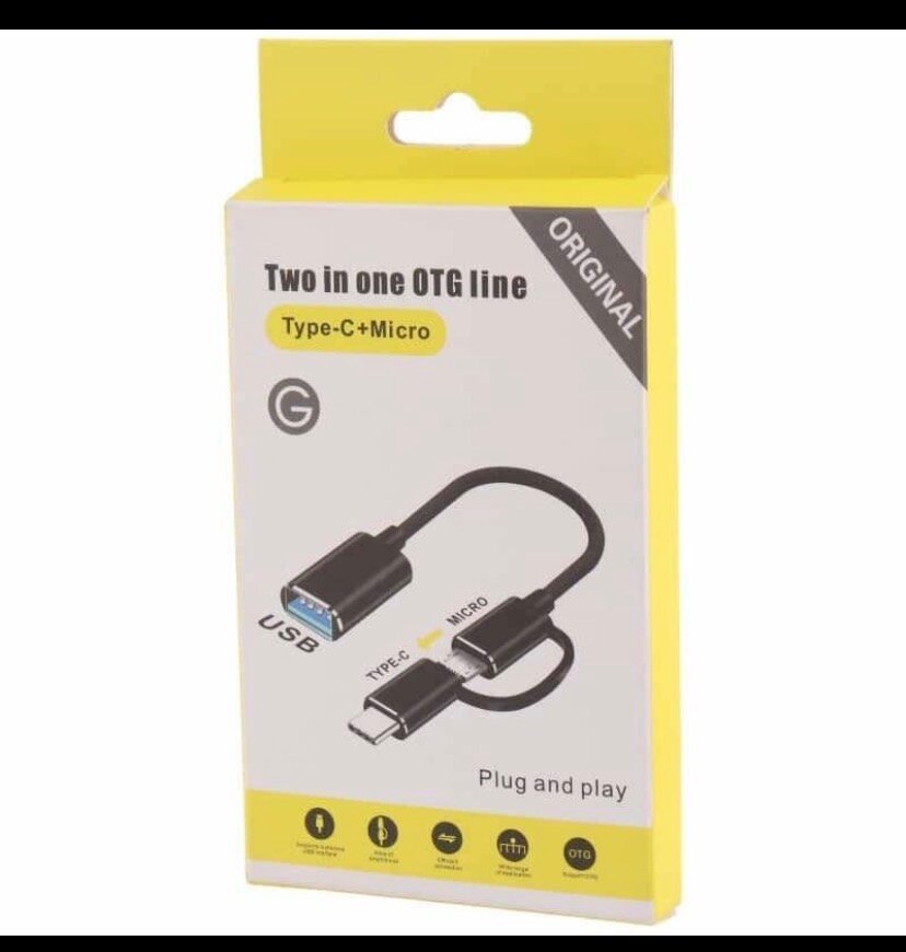 Câble adaptateur OTG 2-en-1 pour connecter vos appareils USB à des ports Type-C et Micro USB. Idéal pour transférer des données et recharger facilement divers appareils. Compatible avec la plupart des smartphones et tablettes.