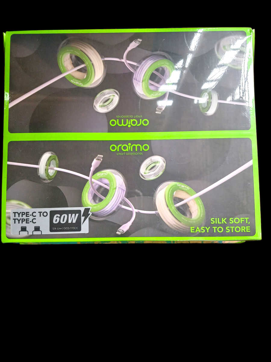 Découvrez le câble de charge rapide de Oraimo, conçu avec soin pour offrir une performance optimale avec une puissance de 60W. Ce câble Type-C à Type-C est parfait pour recharger vos appareils rapidement et efficacement. Fabriqué avec des matériaux de qualité, il est doux au toucher et facile à ranger. Idéal pour une utilisation quotidienne à la maison ou en déplacement.