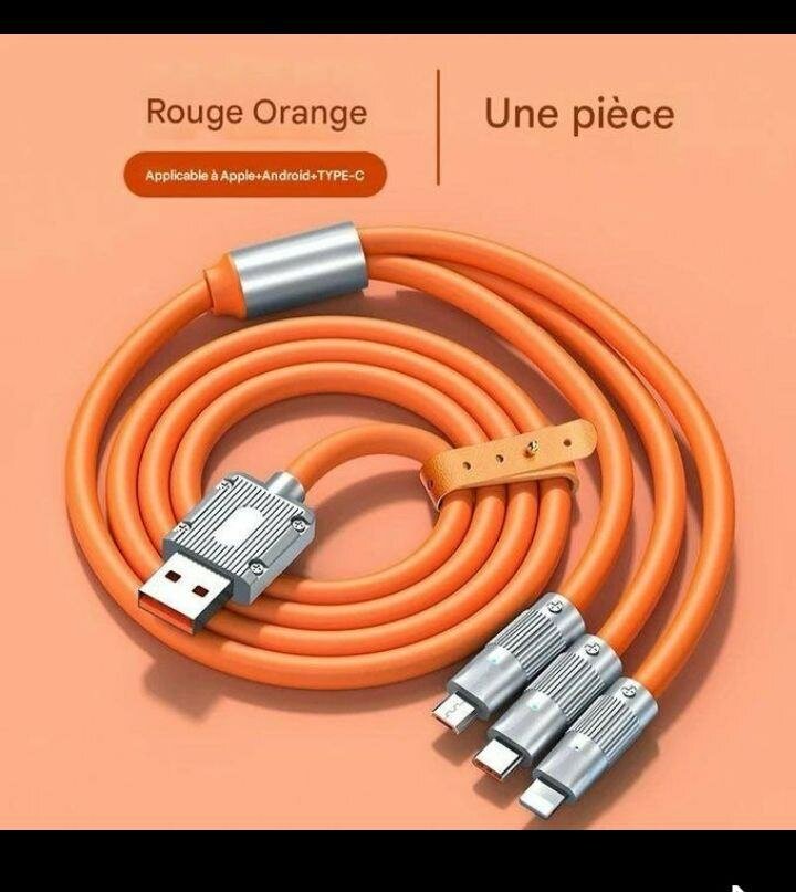 Câble de charge rapide 3-en-1 compatible Apple, Android et Type-C. Idéal pour simplifier vos charges multiples avec une seule pièce élégante et robuste. Parfait pour la maison, le bureau ou en déplacement.