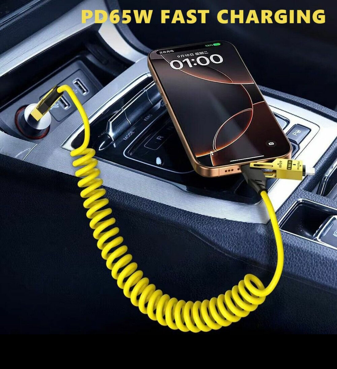 Profitez d'une charge ultra-rapide et fiable avec ce câble USB C de 65W. Idéal pour votre ordinateur portable, téléphone Android ou iPhone grâce à sa conception à ressort innovante. Extensible jusqu'à 1,5m pour un usage pratique en voiture ou à la maison. Résistant à l'usure et facile à ranger, c'est le compagnon parfait pour vos appareils de toutes marques. Compatible avec Apple 14/15/16.