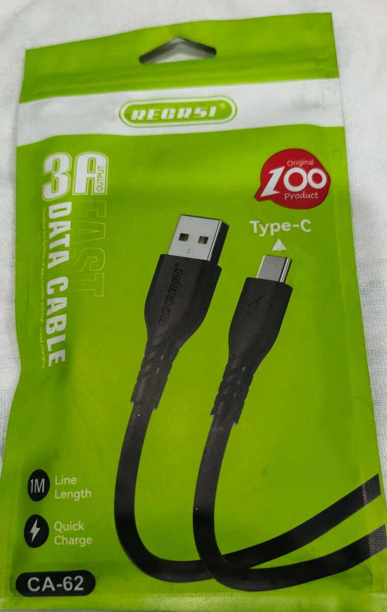 Câble de données USB Type-C rapide 3A, idéal pour une charge rapide et sûre. Longueur de 1m, parfait pour la maison ou le bureau. Compatible avec divers appareils.
