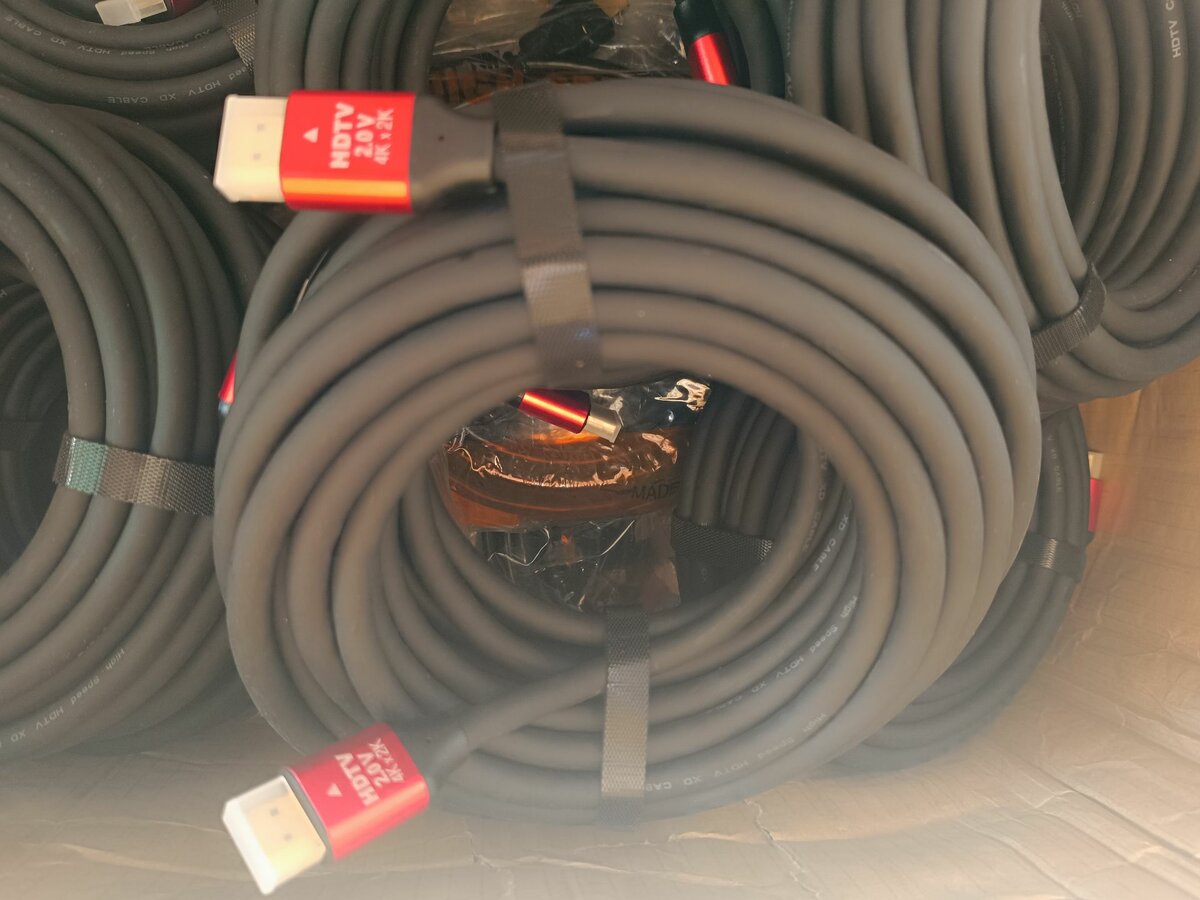 Il s'agit d'un câble HDMI noir haute vitesse de 10 mètres de long, enroulé sur lui-même. Il prend en charge la résolution 4K.