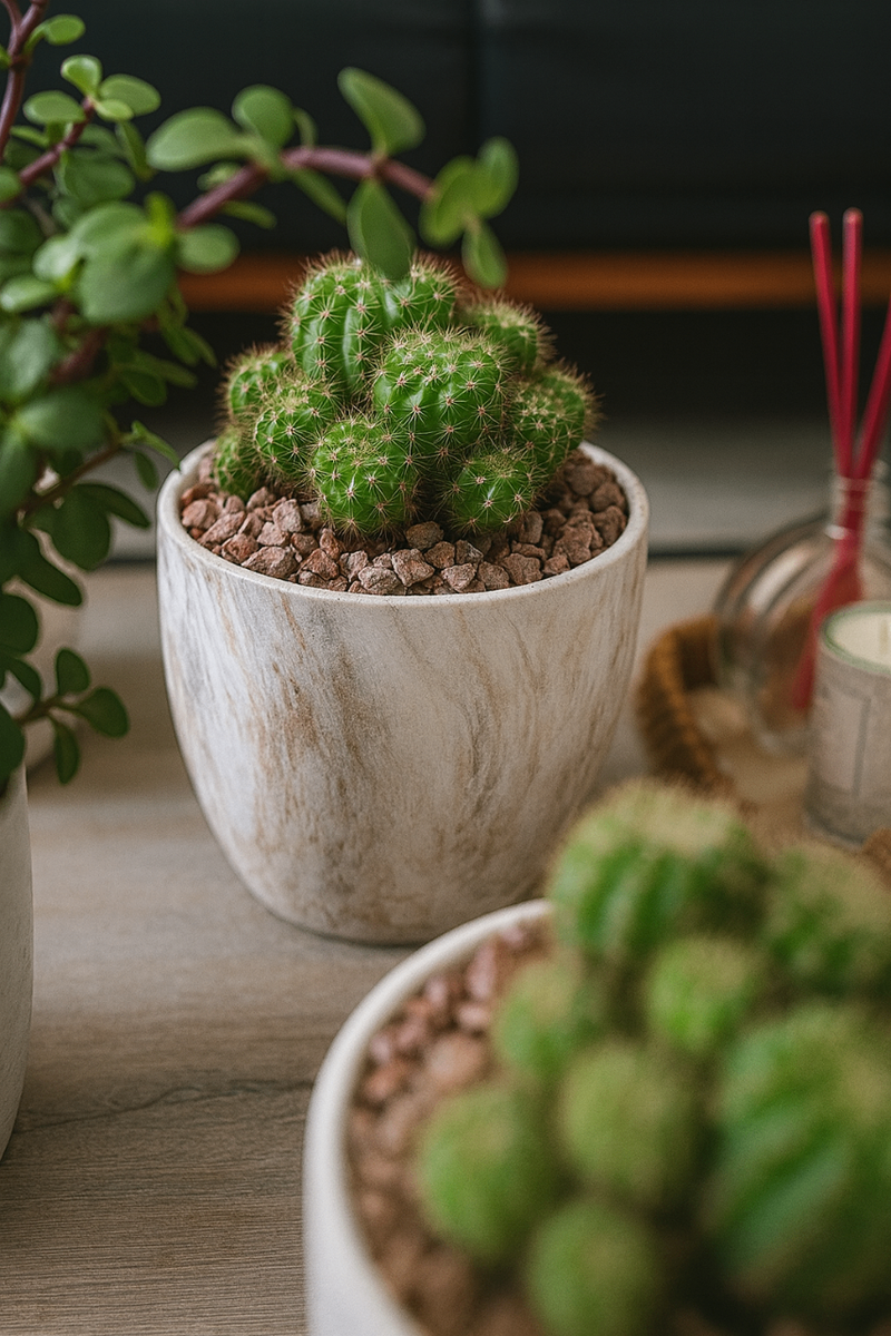 Apportez une touche de verdure moderne à votre intérieur avec ce cactus décoratif en pot élégant. Idéal pour le salon, le bureau ou la chambre, ce cactus facile à entretenir est parfait pour ceux qui aiment les plantes sans tracas. Le pot au design marbré ajoute une élégance naturelle à tout espace.