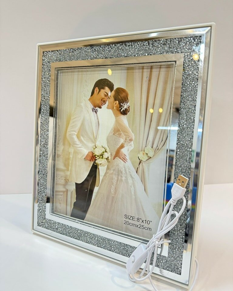 Élégant cadre photo numérique avec éclairage LED, idéal pour afficher vos souvenirs. Plusieurs tailles disponibles.