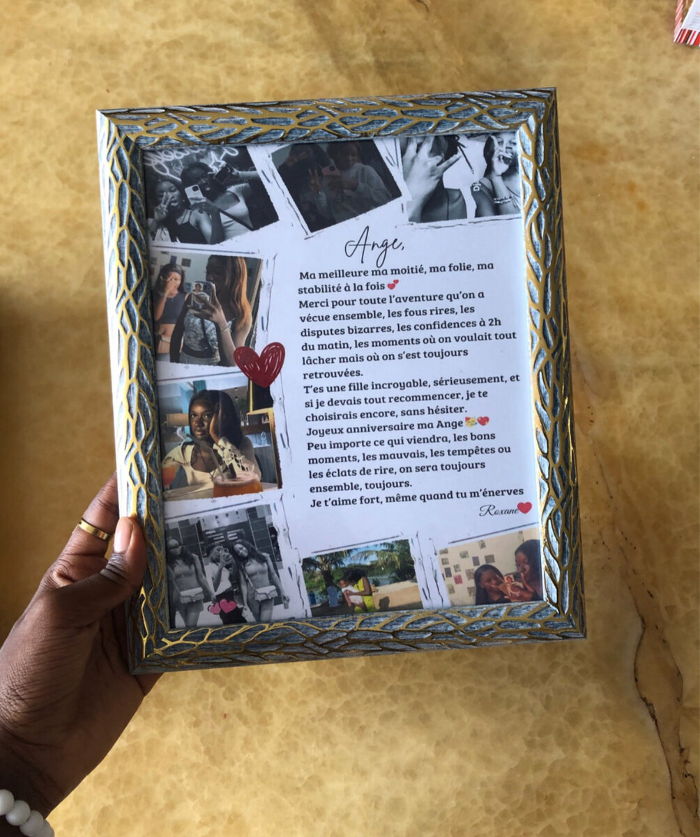 Immortalisez vos souvenirs précieux avec ce cadre photo personnalisé. Parfait pour des occasions spéciales ou pour décorer votre intérieur avec des moments inoubliables. Ce cadre élégant avec des motifs gravés est idéal pour offrir à une personne chère. Taille parfaite et prêt à être exposé dans votre maison.