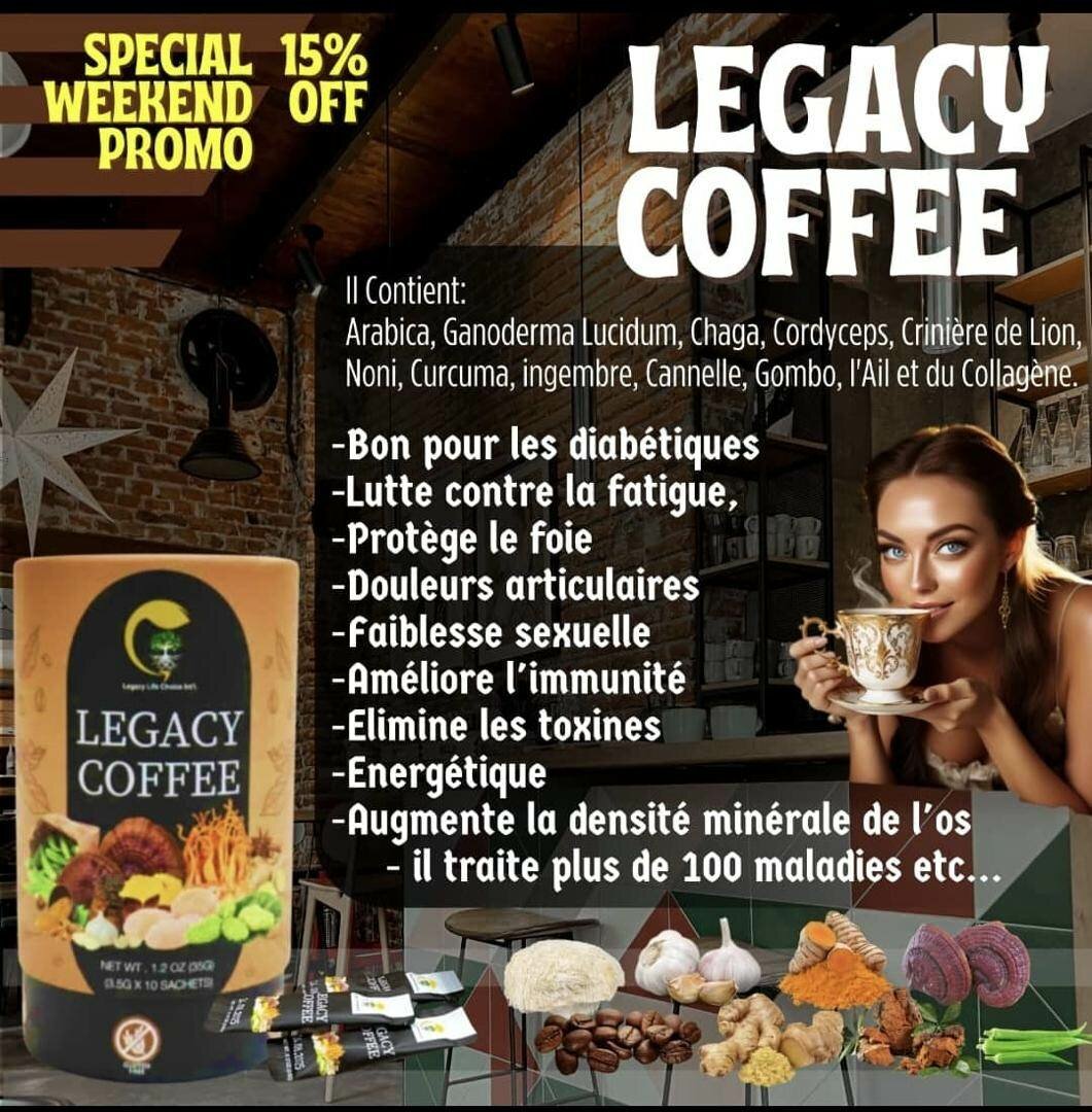 Boostez votre bien-être avec le café santé Legacy, enrichi en superaliments. Idéal pour l'énergie, l'immunité et la détoxification.