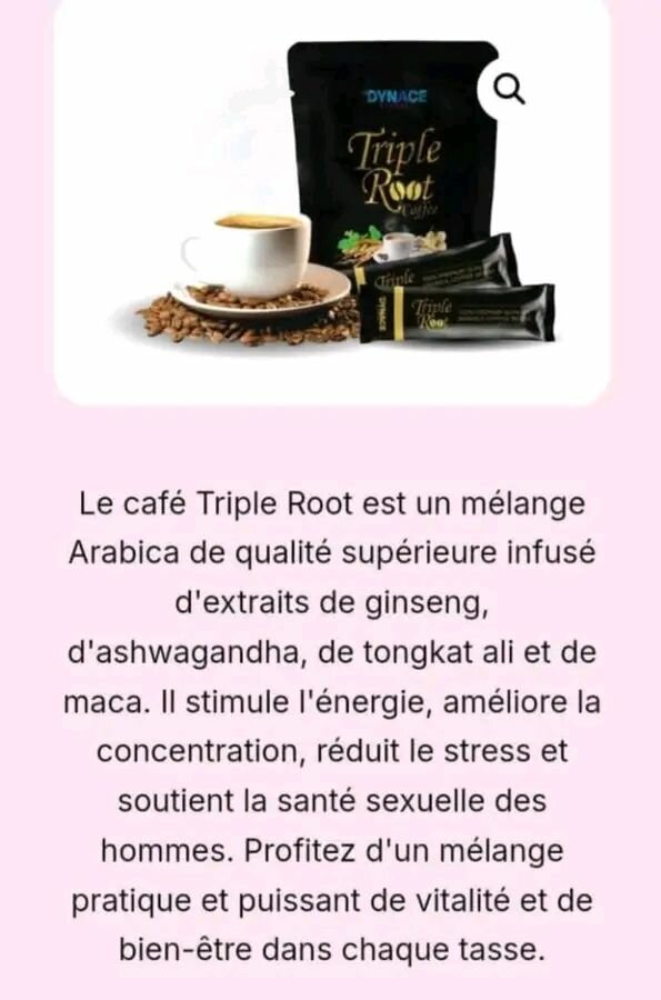 Découvrez le Café Triple Root, un mélange de café Arabica supérieur enrichi d'extraits de ginseng, ashwagandha, tongkat ali et maca. Stimulez votre énergie, améliorez votre concentration et soutenez votre santé au quotidien. Idéal pour booster votre vitalité et réduire le stress avec chaque tasse. Profitez d'un café qui allie plaisir et bien-être. Parfait pour un regain de force masculine et bien plus encore!