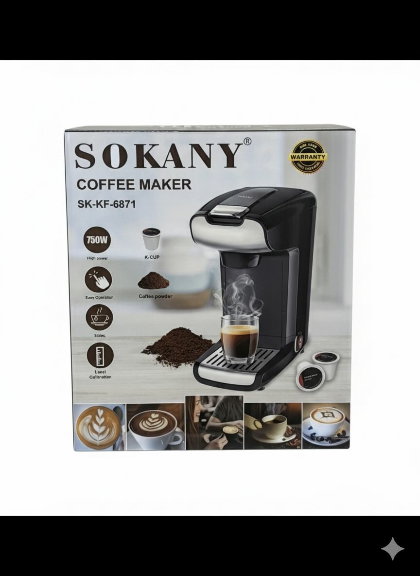 Profitez d'un café parfait à la maison avec la cafetière électrique Sokany SK-KF-6871, puissante de 750W. Conception élégante, facile d'utilisation, idéale pour les vrais amateurs de café.
