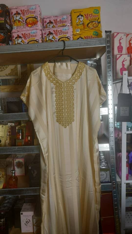 Ce caftan doré, avec ses détails brodés délicats, combine tradition et élégance moderne. Parfait pour les occasions spéciales ou les fêtes, il offre confort et style intemporel. Idéal pour se démarquer avec sophistication.