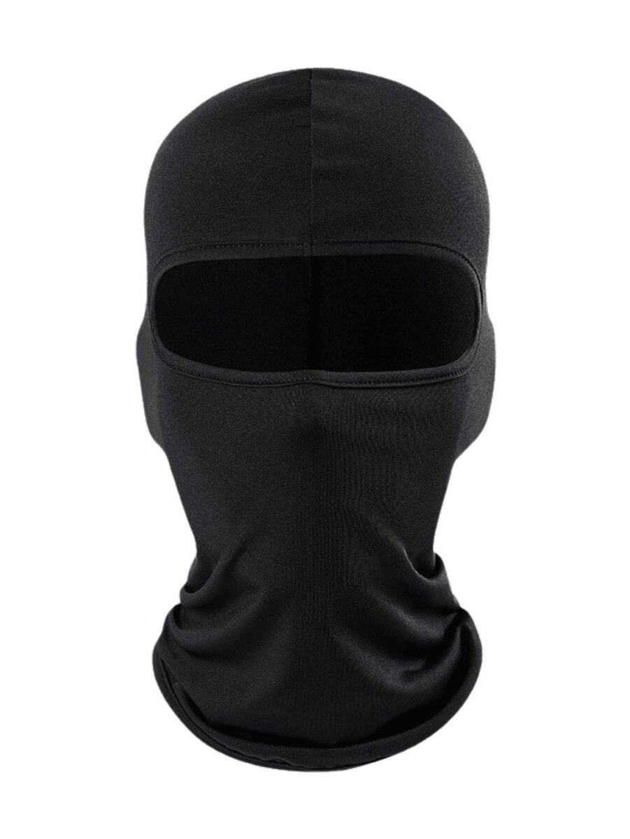 Cagoule noire en tissu élastique pour homme, idéale pour le sport, la moto et les activités en plein air. Confortable et respirante.