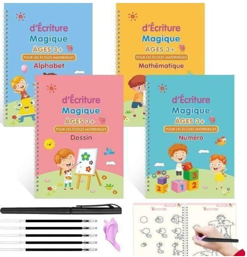 Découvrez nos cahiers magiques d'écriture pour enfants âgés de 3 ans et plus. Parfaits pour l'apprentissage de l'alphabet, des mathématiques, du dessin et des nombres. Livrés avec des stylos magiques pour une écriture réutilisable, ces cahiers favorisent l'éveil et le développement des compétences éducatives tout en s'amusant. Idéal pour les écoles maternelles et l'usage à domicile.