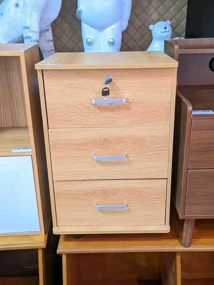 Caisson de bureau mobile avec trois tiroirs spacieux, idéal pour le rangement efficace de documents et accessoires. Finition bois clair et poignées métalliques modernes. Parfait pour la maison et le bureau.