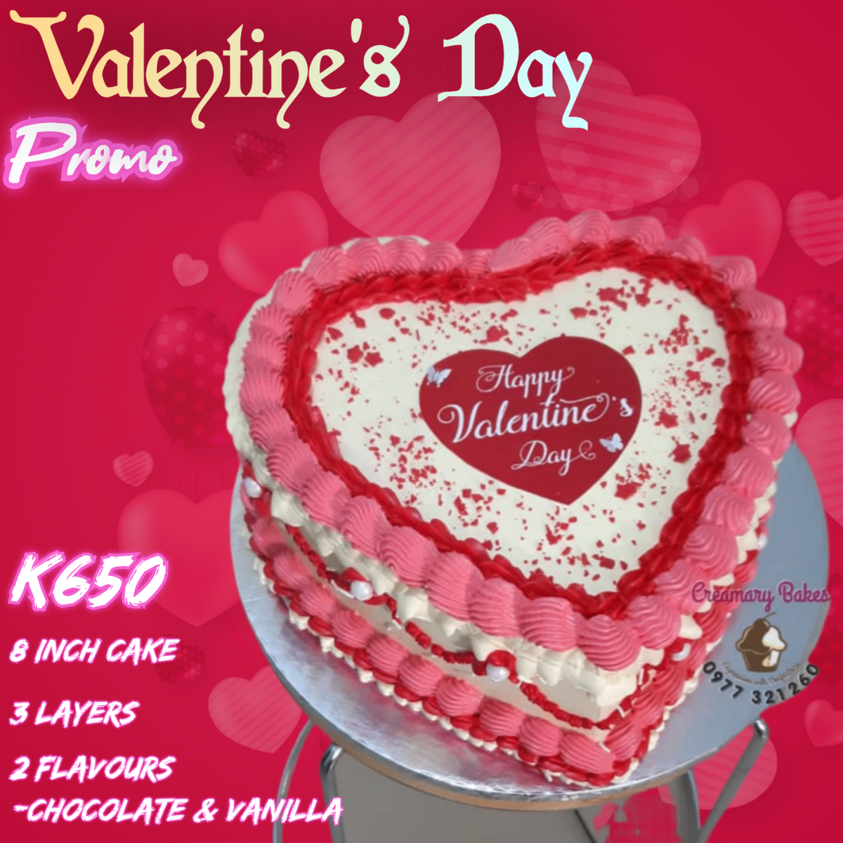Valentines cake promo. K650 8" 3 layers of vanilla and chocolate flavours combined.