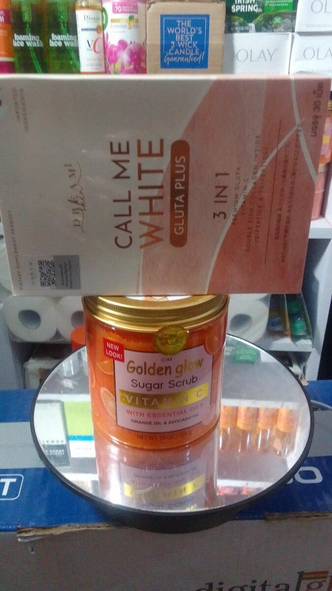 Call me white collagen supplements that gives you 3 shades lightning and glowy skin and the golden glow sugar scrub vitamin c to exfoliate your body for bougie results buy this combo and thank me later... Note I deal in original products only