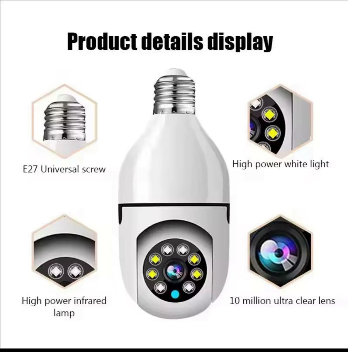 Caméra ampoule Wi-Fi intégré Rotation à 360° Vision nocturne nette Détection de mouvement Stockage cloud / Compatible carte SD