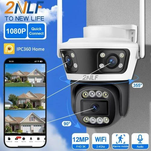 Caméra extérieure haute définition 12MP avec vision nocturne intelligente et connectivité WiFi. Profitez d'une surveillance à 360° avec un zoom puissant pour une sécurité optimale de votre maison. Installation facile et alertes mobiles incluses.