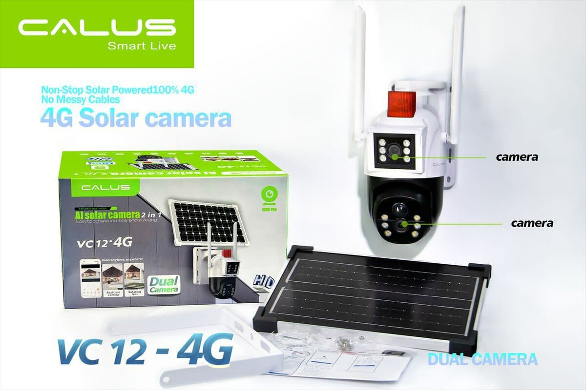 Caméra solaire 4G CALUS offrant une surveillance continue et sans fil. Idéale pour l'extérieur grâce à son panneau solaire et sa connexion 4G. Avec double caméra pour une vue optimale. Parfaite pour sécuriser maison ou entreprise de manière écologique.