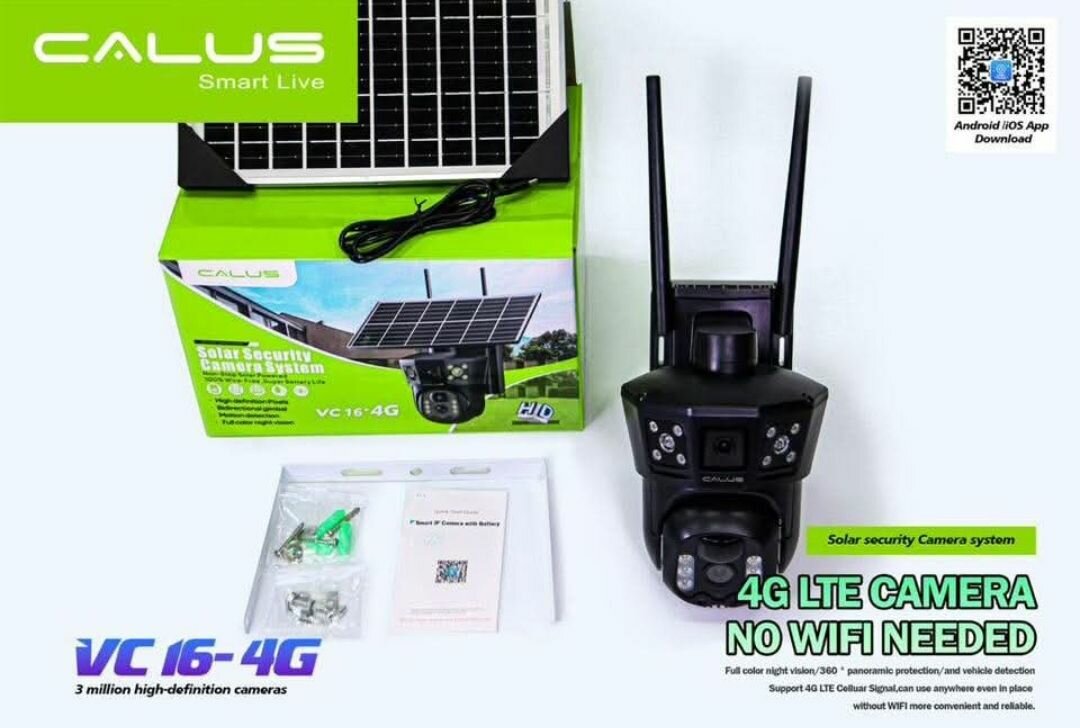 Caméra de surveillance Calus autonome avec panneau solaire intégrée. Parfaite pour sécuriser les espaces éloignés, elle fonctionne sans WiFi nécessaire grâce à la 4G. Idéale pour les fermes, chantiers ou résidences secondaires. Installation facile et vidéo HD.