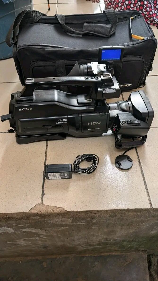 Caméscope Sony HDV d'occasion avec accessoires et sac de transport. Idéal pour les amateurs de vidéo et les professionnels. Comprend chargeur et câbles.