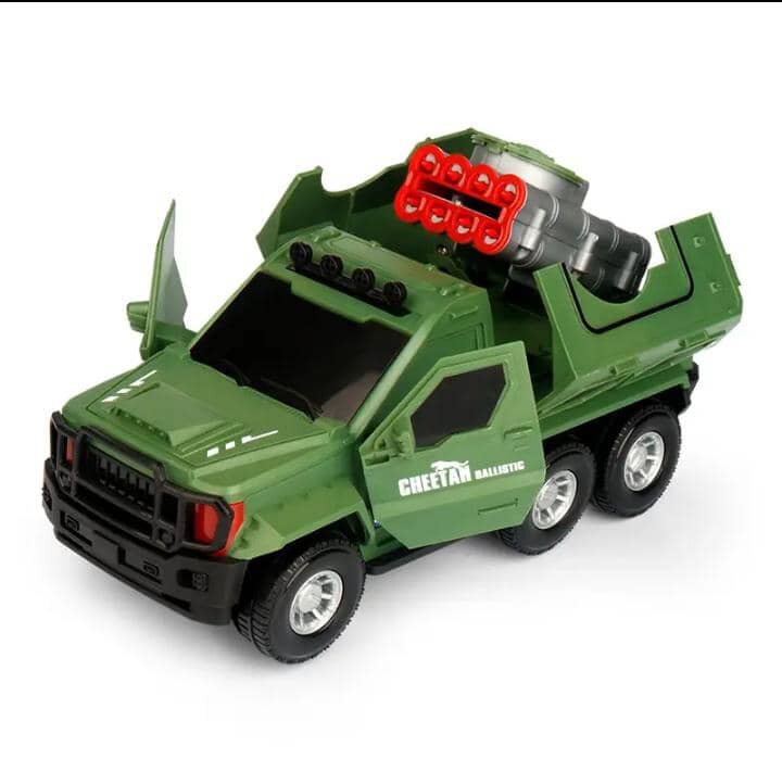 Camion jouet militaire avec lance-missiles rotatif. Idéal pour les enfants, ce jouet robuste stimule l'imagination et l'aventure. Parfait pour jeux et collections.