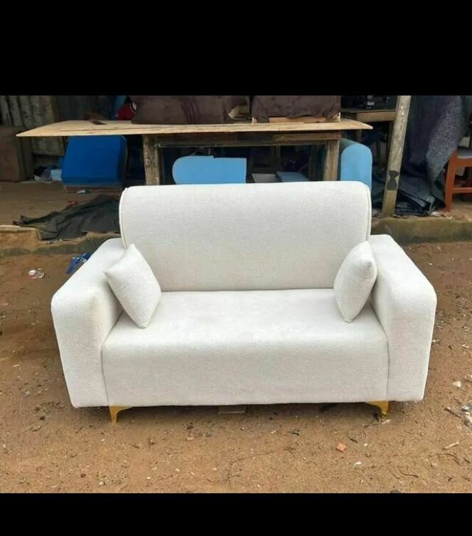 Canapé 2 places en tissu blanc, confortable et moderne. Parfait pour salon ou salle d'attente. Facile à nettoyer et durable.