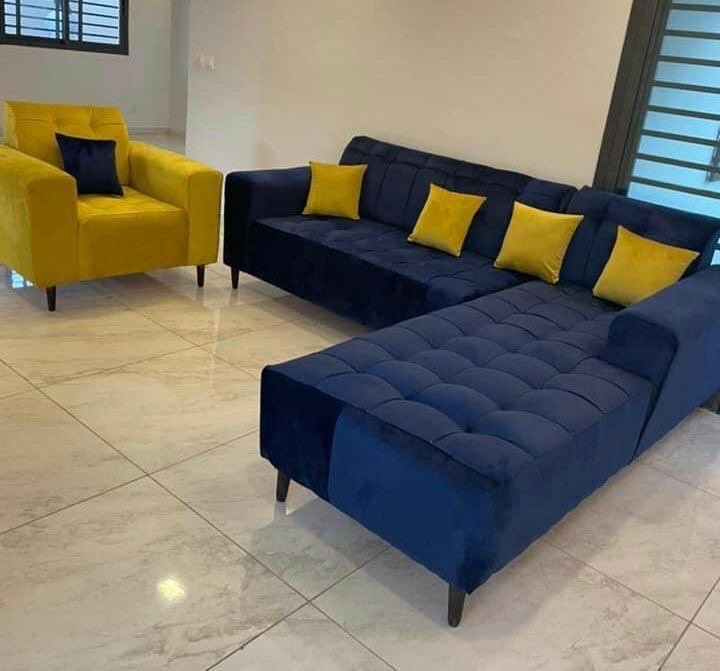 Transformez votre salon avec ce canapé d'angle bleu élégant et confortable, idéal pour les réunions entre amis et la détente. Conçu avec des matériaux de haute qualité pour un confort durable.