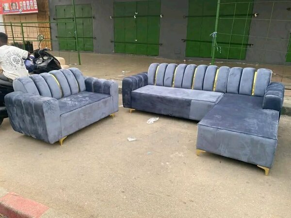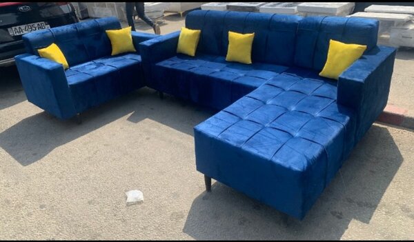 Ajoutez du style et du confort à votre salon avec ce canapé d'angle bleu moderne. Conçu avec des matériaux de qualité, il inclut des coussins jaunes pour une touche de couleur vive. Idéal pour les réunions de famille ou les moments de détente!