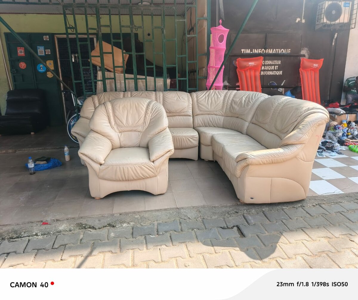 Transformez votre salon avec ce canapé d'angle élégant et spacieux en cuir beige. Idéal pour recevoir des invités ou se détendre. Un choix parfait pour un intérieur moderne.