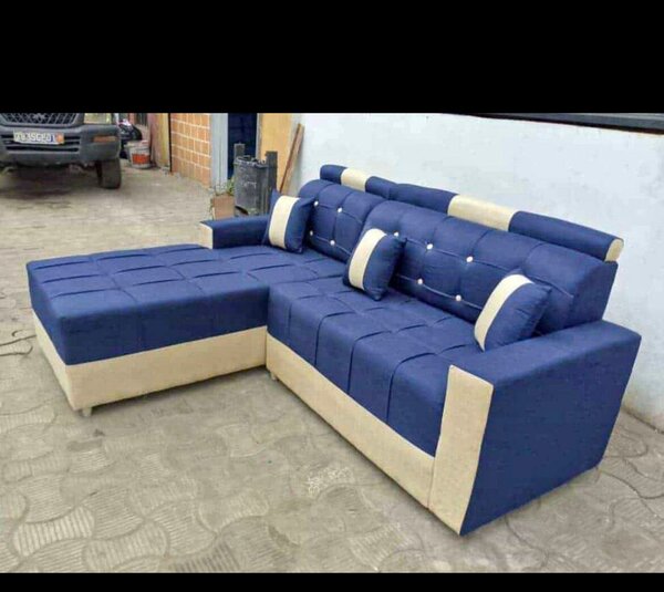 Canapé d'angle moderne en cuir bleu avec ottomane. Conçu pour le confort et l'élégance, il est idéal pour les salons. Fabriqué avec des matériaux de haute qualité, il offre un design luxueux et une durabilité exceptionnelle.