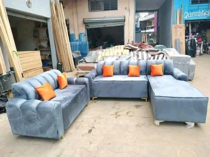 Équipez votre salon d'un canapé d'angle moderne en cuir gris. Confortable et élégant, il est idéal pour les grands espaces et les soirées en famille. Livré avec des coussins décoratifs.