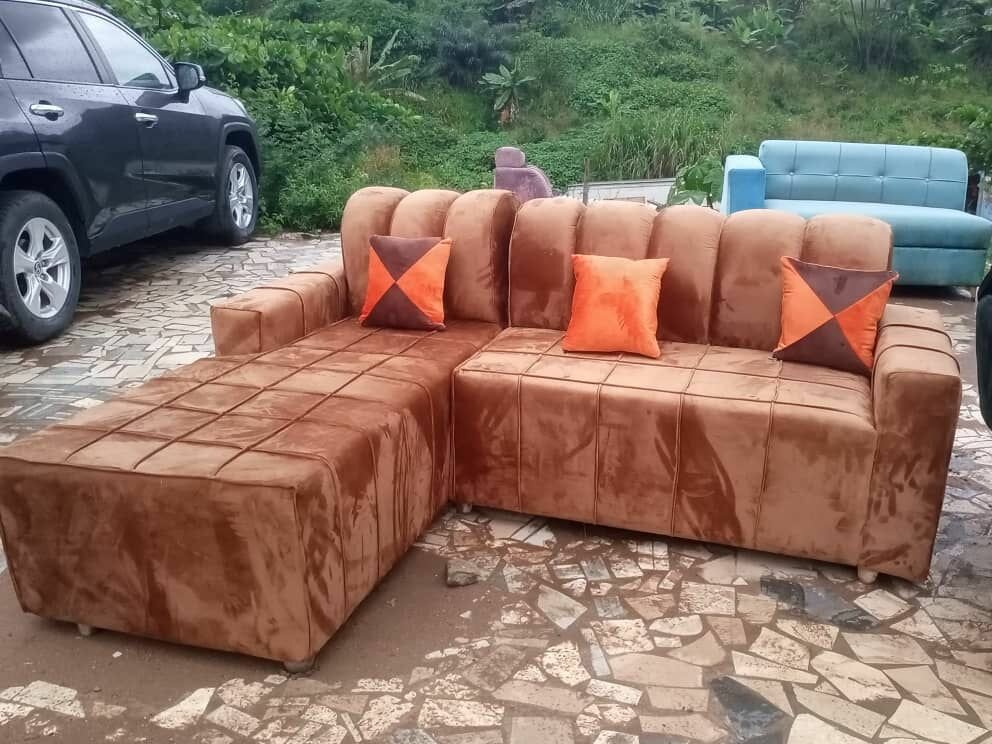 Canapé d'angle en velours marron