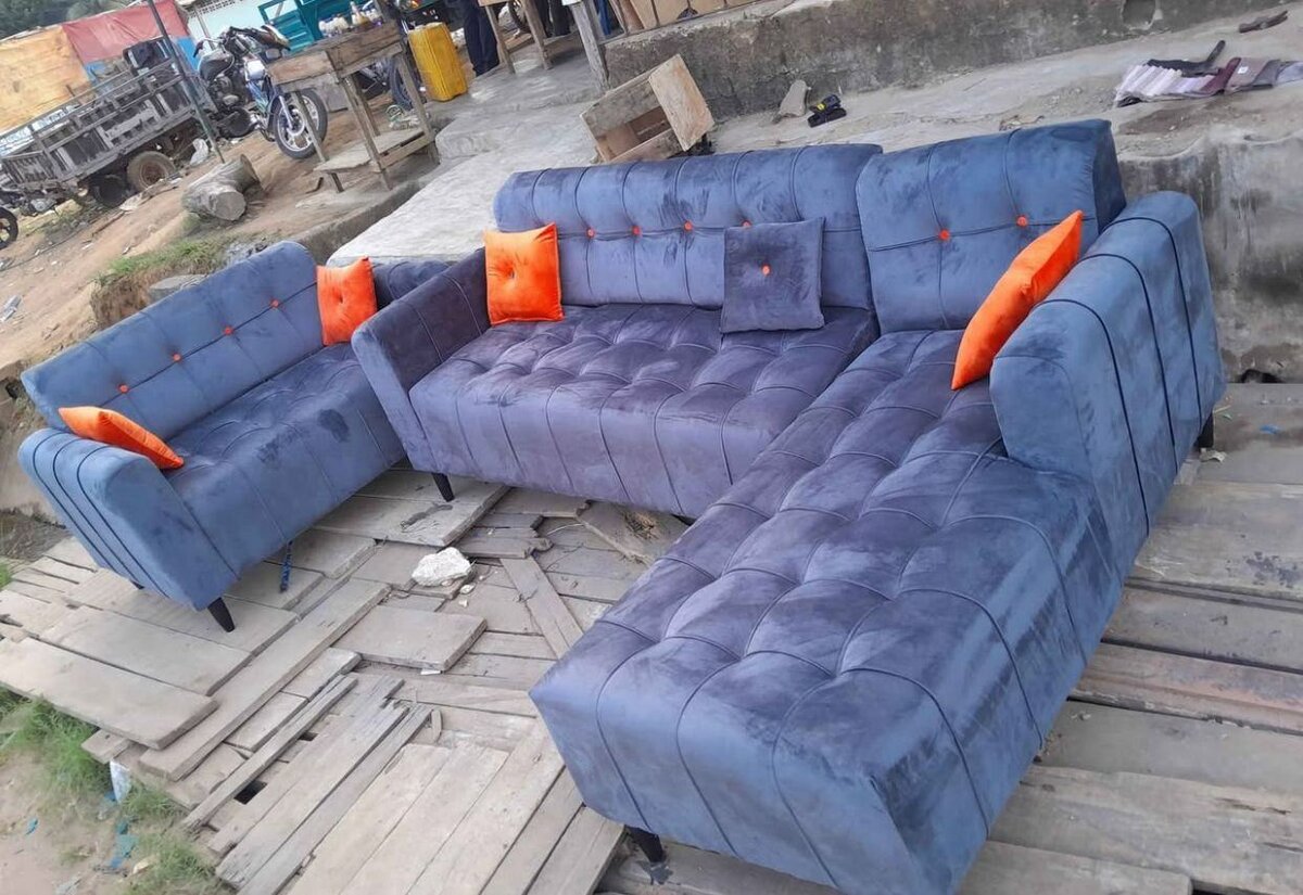 Transformez votre salon avec cet élégant canapé d'angle en velours. Confort exceptionnel, style moderne, parfait pour les grands espaces. Complétez votre déco avec une touche de luxe. Idéal pour se détendre ou recevoir des invités. Coussins inclus pour plus de confort et élégance.