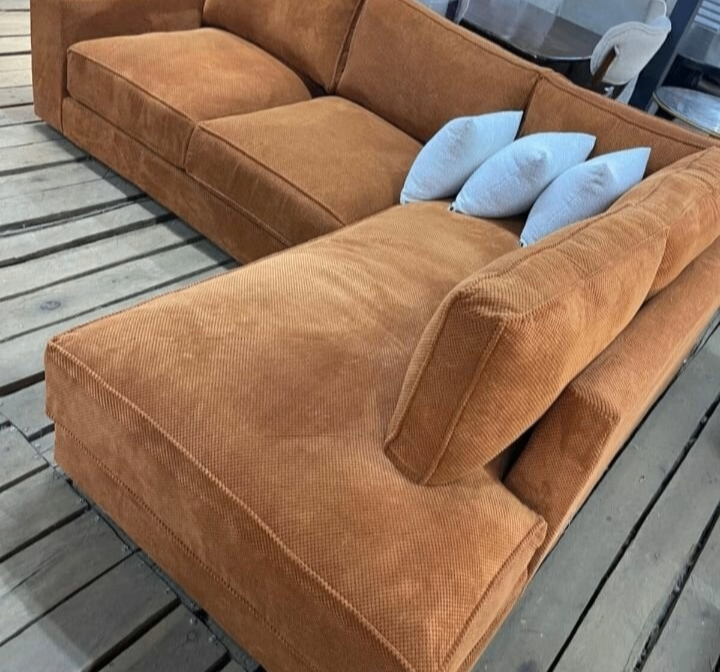 Élégant canapé d'angle en velours marron, idéal pour votre salon. Confortable et moderne, il est parfait pour des moments de détente en famille ou entre amis.