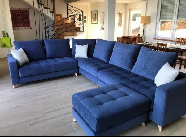 Découvrez ce canapé d'angle moderne en bleu, parfait pour un salon contemporain. Doté de coussins confortables et d'un design épuré, il est idéal pour se détendre et recevoir des invités. Son tissu durable et ses pieds en bois ajoutent une touche élégante à votre intérieur. Transformez votre espace de vie avec ce meuble fonctionnel et stylé.
