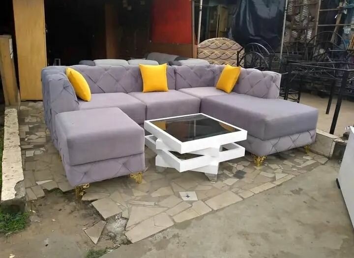 Transformez votre salon avec ce canapé d'angle moderne et élégant. Son tissu gris doux s'harmonise facilement avec n'importe quel décor, tandis que les coussins jaunes ajoutent une touche de couleur vive. Confort supérieur pour les moments relaxants. Idéal pour tout espace de vie moderne.