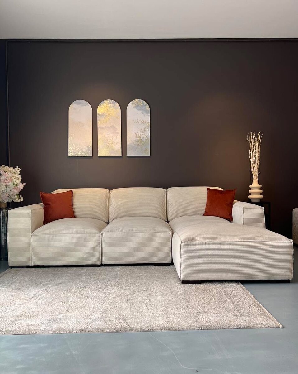 Découvrez un canapé d'angle modulable, parfait pour créer un espace accueillant et moderne dans votre salon. Son design épuré et sa couleur neutre s'harmonisent avec tout décor. Grâce à ses coussins confortables, il offre un repos optimal après une longue journée. Idéal pour accueillir famille et amis ou simplement se détendre en solo.