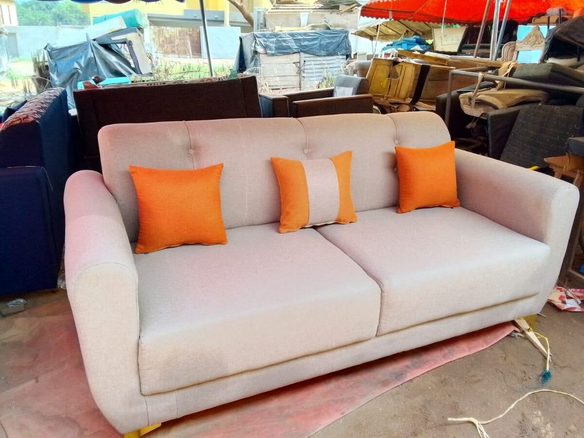 Ajoutez une touche d'élégance à votre salon avec ce canapé moderne beige. Confortable et stylé, il est parfait pour se détendre en famille ou entre amis. Ses coussins orange apportent une note de couleur et de chaleur. Idéal pour tout intérieur contemporain.
