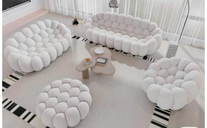 Découvrez ce canapé modulable blanc design, parfait pour créer un salon moderne et confortable. Sa forme unique et son revêtement doux ajoutent une touche d'élégance à votre espace de vie.