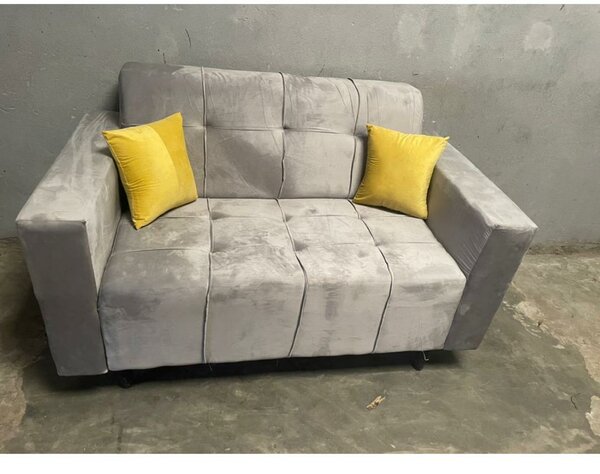 Transformez votre espace avec ce canapé en velours gris moderne. Confortable et élégant, il est parfait pour le salon ou la chambre. Livré avec deux coussins jaunes qui ajoutent une touche de couleur vive. Conçu pour offrir un confort optimal et un style chic, ce canapé est idéal pour une décoration tendance et accueillante.