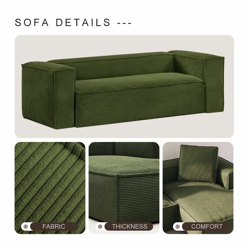 Transformez votre espace avec ce canapé vert élégant et moderne. Fabriqué avec un tissu doux et épais pour un confort ultime. Idéal pour le salon, ce canapé allie style et fonctionnalité. Parfait pour des moments de détente ou pour accueillir vos invités avec élégance.