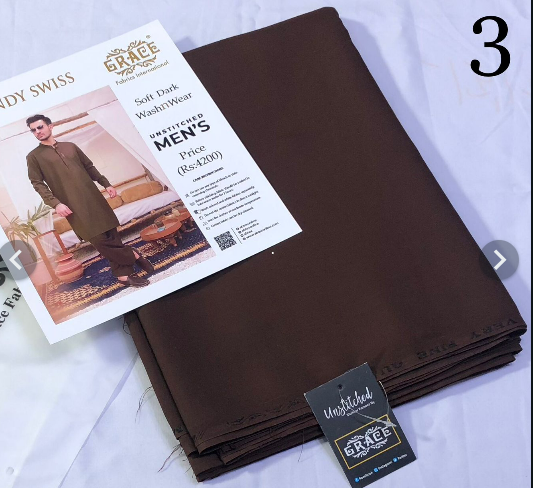 👉Dark Shades 👉Plane Suiting 👉✂️4 Meter Full Shalwar Kameez 👉Width 54~56" Inches 👉Inlay Card 👉Brand Bag & Price TagCandy Swiss Wash n Wear