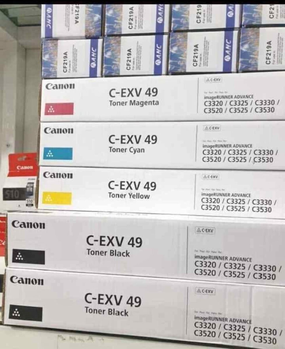 Ensemble de toners Canon C-EXV 49, idéal pour les imprimantes imageRUNNER ADVANCE. Couleurs Magenta, Cyan, Jaune et Noir. Assurez une impression de haute qualité et des performances fiables pour vos besoins professionnels.