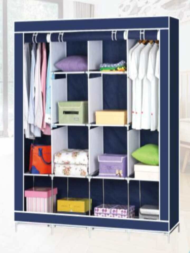 This Plastic Portable Collapsible Wardrobe will take care of your storage neediness. This mobile wardrobe is versatile, durable and environmentally friendly. The structure and design of this closet includes hanging spaceship. It has front panel roll up for fast and easy access to your clothes and shoes. This closet will help you organised and ensure all your shoes and
